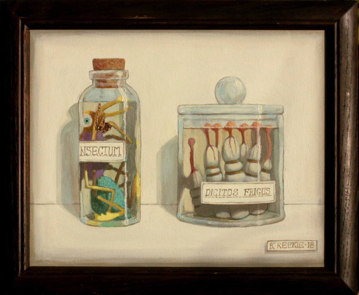 Specimen Insectum Published 2022/02/12 at 2303 × 1896 Specimen Insectum, 2018. Oil on canvas. 35cm x 29cm. Framed in wood. SOLD.